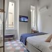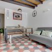 Gli affacci interni garantiscono un’atmosfera riservata e confortevole, mentre i soffitti alti con mattoni a vista e i dettagli delle finiture rendono questo appartamento una scelta di stile per il vostro soggiorno a Roma.