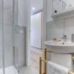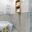 L’appartamento dispone di due camere da letto, una con letto matrimoniale e bagno en-suite e l’altra con un divano letto matrimoniale, anch’essa dotata di bagno privato, garantendo privacy e comodità per tutti gli ospiti. Un terzo bagno completo è accessibile dalla zona giorno, offrendo un ulteriore tocco di praticità. La cucina moderna e attrezzata include un angolo pranzo perfetto ed è fornita di forno, piano cottura, frigorifero, microonde, lavastoviglie, bollitore e macchina del caffè con cialde.