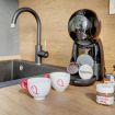 La sala da pranzo con cucina è attrezzata con smart TV, macchina del caffè, forno, frigorifero, utensili, stoviglie e piano cottura.